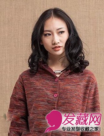 黑色的卷发略显成熟,中长度的自然卷发不会显得过于凌乱,整款发型也非常清新优雅,对于肉肉脸女生还非常显清瘦。