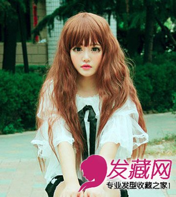 这款个性感十分强的女生长卷发发型也很迷人哦,将及腰的长发做上清新美丽的玉米烫造型同,再配合温暖的棕橘色染发,厚重的刘海,蓬松的长发修颜的同时还很显女生的可爱甜美感,打造出来的效果更像一个可爱的芭比娃娃哦。