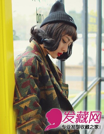 对于手笨的发妹子只有靠造型师了,一款精致的短卷发造型显露出个怀与时尚的一面,搭配上帽子十分显气质感。