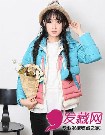 时尚的空气刘海勾勒出小女生可爱的一面,一款清新的双麻花辫显露出可爱小巧的精致感来,造型简单有个性。