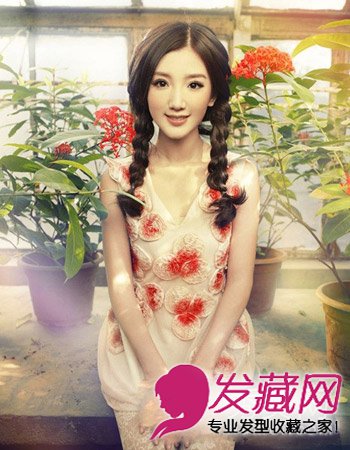 时尚的双马尾编发发型,搭配侧分的刘海设计,展现一款田园味十足的淑女扎发造型,喜欢扎发的美眉不妨试试吧!