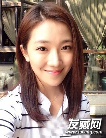 甜甜的何以玫,干净的笑容,素雅的妆容,简洁的中长发,乖巧的内扣设计,打造出清秀的邻家女孩范。