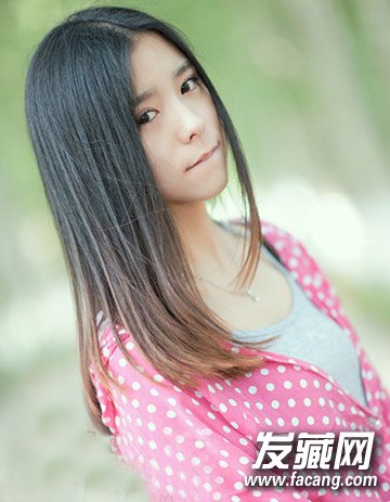 简单的中分发发型,发梢的渐层染发让发型看起来格外自然,轻薄的长直发清新飘逸。