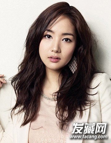 韩式微卷发发型,披肩的中长发搭配微微凌乱的卷发,彰显个性时尚范,栗色的颜色显白更显干练气质。