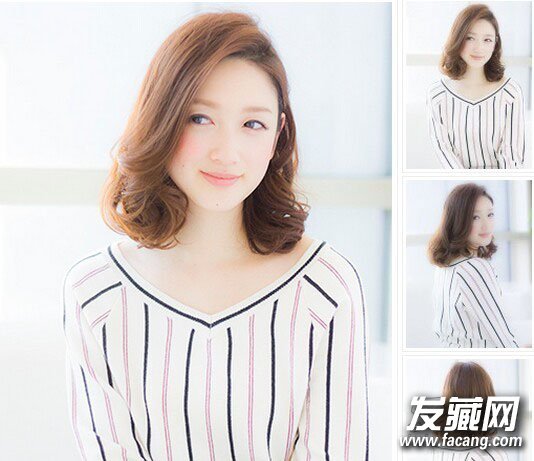 深棕色的染发颜色衬托出白皙的肤色,加上披肩的蓬松卷发造型之后变得很有清秀的感觉哦。