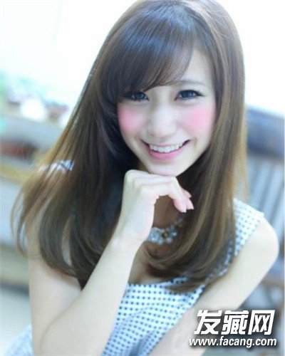 同样是一款简单的中长直发发型,柔顺的发色颇显光泽,精致的小脸从侧面看来颇显无辜讨人怜的样子,发尾整齐的勾勒出清甜的公主范来,小巧伶俐。