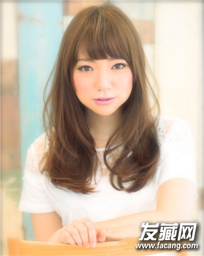 略微有些饱满的刘海内扣设计有着减龄的效果,空气感十足的设计比较轻盈不会显得太过于厚重,而且遮盖住额头的齐刘海设计会很甜美,栗色的染发和内扣的烫发设计衬托着你甜美小清新。