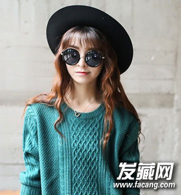 清新的空气感刘海造型一直以来都很爱各个年龄层女生们的喜爱。而配合这种时尚的棕黄色染发与中长发形式的站蛋卷烫发同样优雅吸睛。