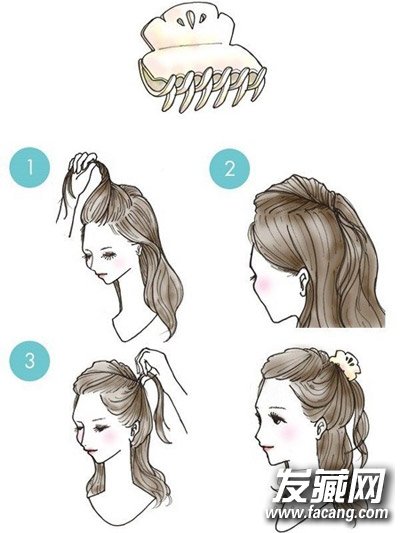 手边有可爱的发饰也可以把刘海夹起来噢。这样简单的扭转扎发生活中也是很常用,将刘海全部弄起来甜美可人。