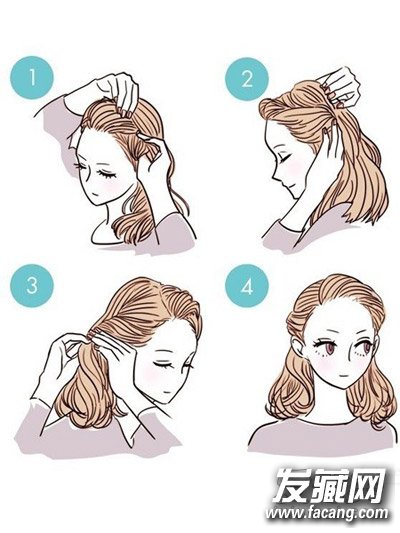 不会绑麻花辫也没关系,扭转几下用发夹固定就好了。这样外翻的扎发方法也是很实用的,扎成公主头甜美加倍。