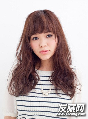 发型点评:厚重的刘海空气感十足,衬托出一双黑亮迷人的大眼睛。栗色长卷发略显粗糙,慵懒清新。