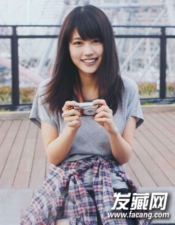 清甜唯美的一款气质中长直发发型,甜美的平刘海打斜后增加了些许灵动与俏皮感,蓬松感更显自然清新风格。