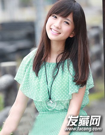 圆脸的女生也很适合中长直发哦,甜美的平刘海发型加上气质的