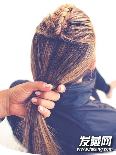 3.将所有的头发,包括已编好的法式辫,全部梳起,梳成一个高马尾。