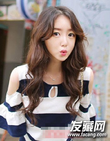 ,利用的是简单时尚的中分造型设计,再配合棕色的染发与水波纹式的长发