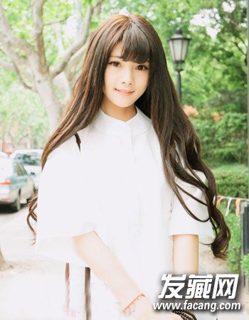 当然也是不容错过的,甜美的平刘海与长卷发的设计勾勒出清新甜美的一面来,平刘海时尚大方而且颇有敢质。