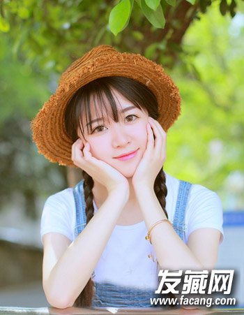 清新的甜美双麻花辫编发勾勒出别致的时尚感来, 搭配上帽子后显露出清新的田园风来,时尚而且有个性。
