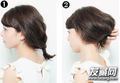 step1:将头发在脑后收拢,在离脖子5~7厘米处用橡皮筋固定发辫。