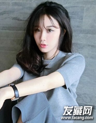空气式的刘海可以给女孩子带来一种萌萌的感觉,给发尾做一个烫发的处理,并且把卷发部分用棕色颜色染发,但是除了发尾部分,以上都不要动,看起来比较清新,有邻家小女生的感觉。