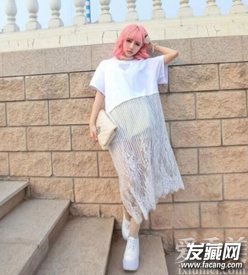 5、粉色头发很醒目,挺非主流的一款齐肩发型,齐刘海配合独特的卷曲,看起来很有芭比娃娃的感觉,可爱又个性呢!