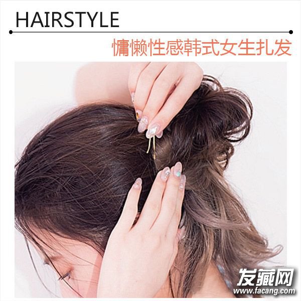step3:将左右拉开变蓬松的发髻边缘用发夹固定。