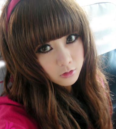 SETP3将假发的刘海翻起来,从头的前部开始戴假发。