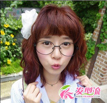 非常亮眼的栗色短发发烫,营造出蓬松又有层次的整体效果。齐眉的刘海比较随意,看上去有种夏日午后慵懒的舒服感。别上一朵白纱材质的花朵,可爱中又透露几分性感。不同的发饰都有不同的点缀效果,各位MM可以尝试下哦。
