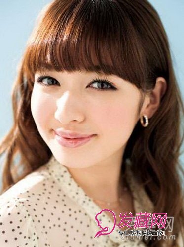 微微向内卷的及刘海,显得厚实。俏皮而可爱!挽向耳后的大波浪长发,很有浪漫小女人的韵味。