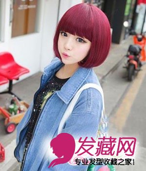 红色的发色,非常绚亮抢眼,热情奔放的色彩,足以吸引大家的眼球了。柔顺的短发裁剪出很有线条美感的bobo发型,搭配萌萌的齐刘海,是一款超人气的卖萌、装嫩的发型呦!