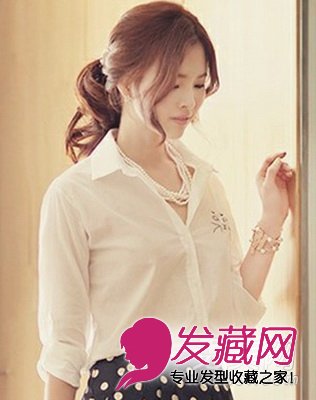 浅橙红色头发的马尾卷发,感觉很灵动很清新,卷卷的弧度柔和脸部线条。