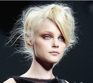 盘发永远是T台的主旋律,精致而又高雅的发髻是凸显女人味的最佳手段,今季的盘发更是恋上了随性与凌乱。在2010的Sado和 Christophe Josse的春夏秀场上,无论是搭配妩媚还是帅气的服饰,模特们都将飘逸的长发高高盘起,高贵典雅的气质立即从华丽的发髻中弥漫开来;再加上凌乱的发丝随性飘逸,又为整体造型加入了一丝慵懒而浪漫的韵味,使你在任何场合都能脱颖而出。