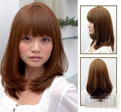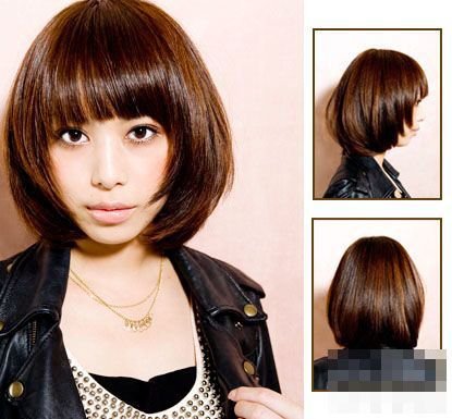 小编点评:齐刘海 不只是整整齐齐一刀切这一种样子,带点弧线型的斜刘海会看起来更有亲和力。饱满的发型设计 让头型更加完美,柔顺光泽感也是今年流行的发型元素之一。