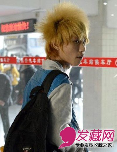 这才是冲冠的标准嘛,金黄色的染发可是个性发型的必备要素,很抢眼却也不是一般人hold的住的。
