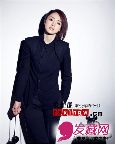 依然是利落的盘发,冷艳个性的男人装扮突出特立独行的一面。