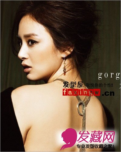 金泰熙拥有完美的脸型,这款无刘海的优雅盘发发型凸显了精致无瑕的五官,呈现轻熟女魅力。