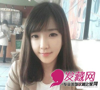 发型设计,中长头发发尾微微烫成内扣大卷,打造出简单的梨花头造型,黑色的发色感觉自然纯美,微微斜分的齐刘海减龄又显清新,塑造了一个清新淑女形象。