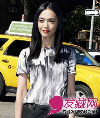 姚晨长得非常大气的五官非常适合中分的刘海,不仅可以柔化五官还充满成熟女性的优雅从容,黑色的柔顺长发干净利落,简单大方。
