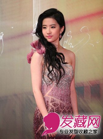 近来走起性感路线的刘亦菲,这款侧分的卷发将她的风情完美展现,配上美人鱼的礼服,真的很美