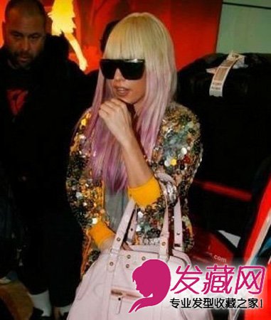 的GaGa最终又回归到这款发型上,爱玩色的她将先前发型改良,紫色部分很抢戏,渐变的颜色很成功。