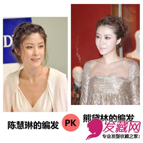 如果不喜欢比较大胆的编发造型,那么上面陈慧琳和熊黛林美美的编发造型可能会让你更加动心。同样是刘海编发,编造出东方女人知性的一面。