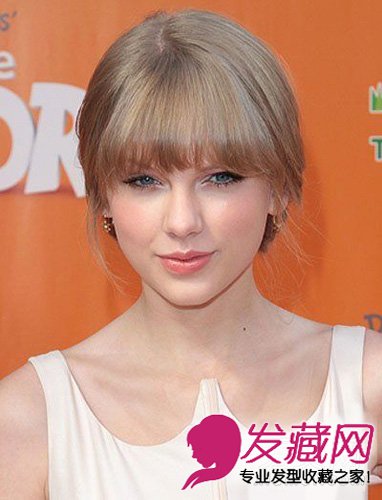 这种刘海适合搭配任何一种发髻,泰勒-斯威夫特以这款齐刘海低垂发髻造型出席电影的首映式。它能很好平衡纯真年轻与优雅淑女的 感觉,长刘海也适合任意年龄的女性。