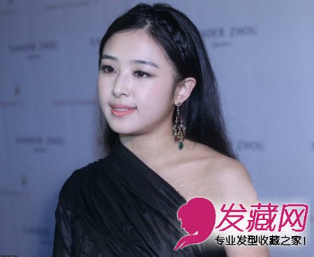 冯丹滢这款及肩直发原本看起来很单调但在刘海编发的粉饰下,显得新意又时尚,而且又凸显出了森林系女孩味道。