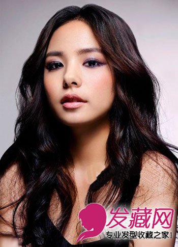 齐胸长度的漂亮大海浪卷发是彰显轻熟女妩媚浪漫气质的最佳选择,可以接纳闵孝琳的这款S卷,并在前发抽出部门发束转变出螺旋卷来作为装饰。
