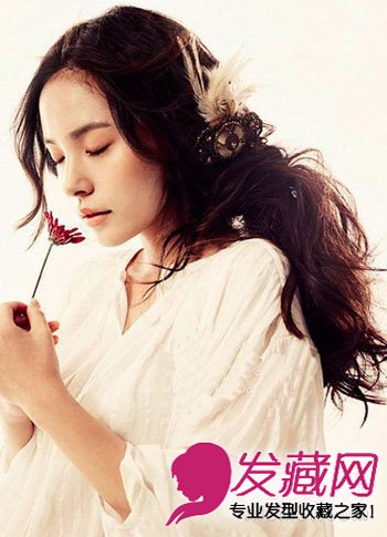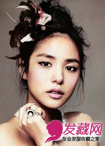 到场派对通常都市接纳盘发,可是若是是年轻女孩儿则会由于盘发而显得老气,闵孝琳的这款羽毛装饰的盘发造型为你提供了不错的参考方案。盘发的部门不用太过细腻死板,搭配年轻感的羽毛发饰,能让造型更可爱。