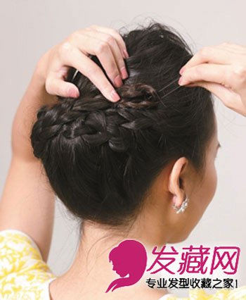 step4:将辫子尾端向内凹用发夹固定。