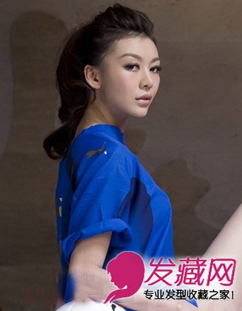 长长的的卷发在脑后随意梳起一个马尾,蓬蓬的发丝修饰头型,看起来时尚充满活力。