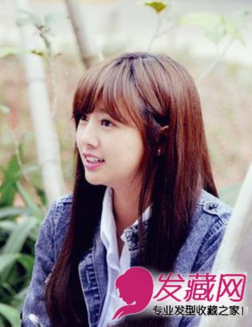 设计的棕色长发,发尾烫出卷翘效果看起来更加时尚,轻薄的刘海修颜又展现出女孩的甜美气质。