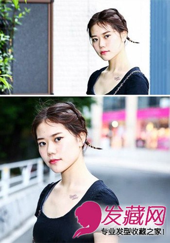 此造型,是不是非常有个性,通过中分刘海的编织一直往下,塑造出一种优雅的编发感觉,但是在发尾却用皮筋扎起,一个小小的尾巴尽显心思。