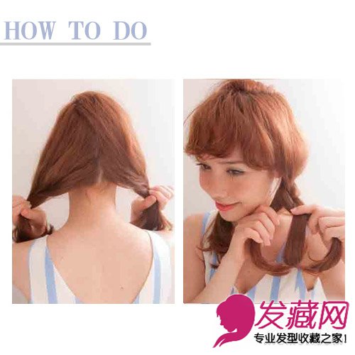 Step2:沿着两颊编织松松的麻花辫,自然遮盖住耳朵。