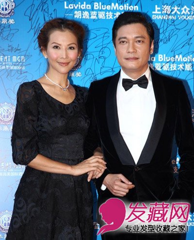 发型很显优雅,中分的盘发造型很适合她这样的熟女。